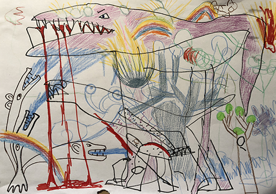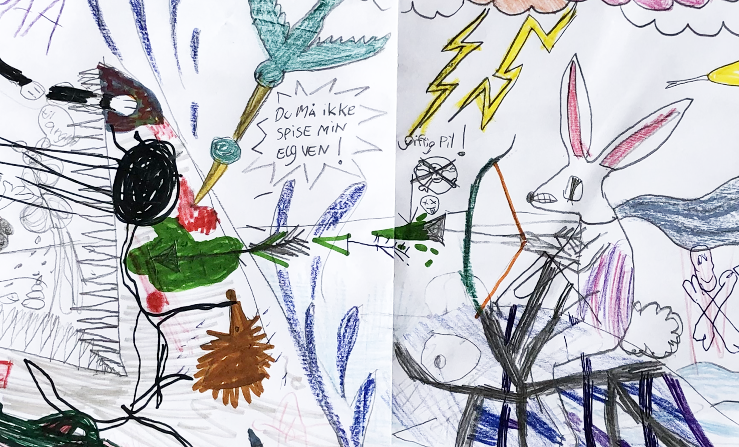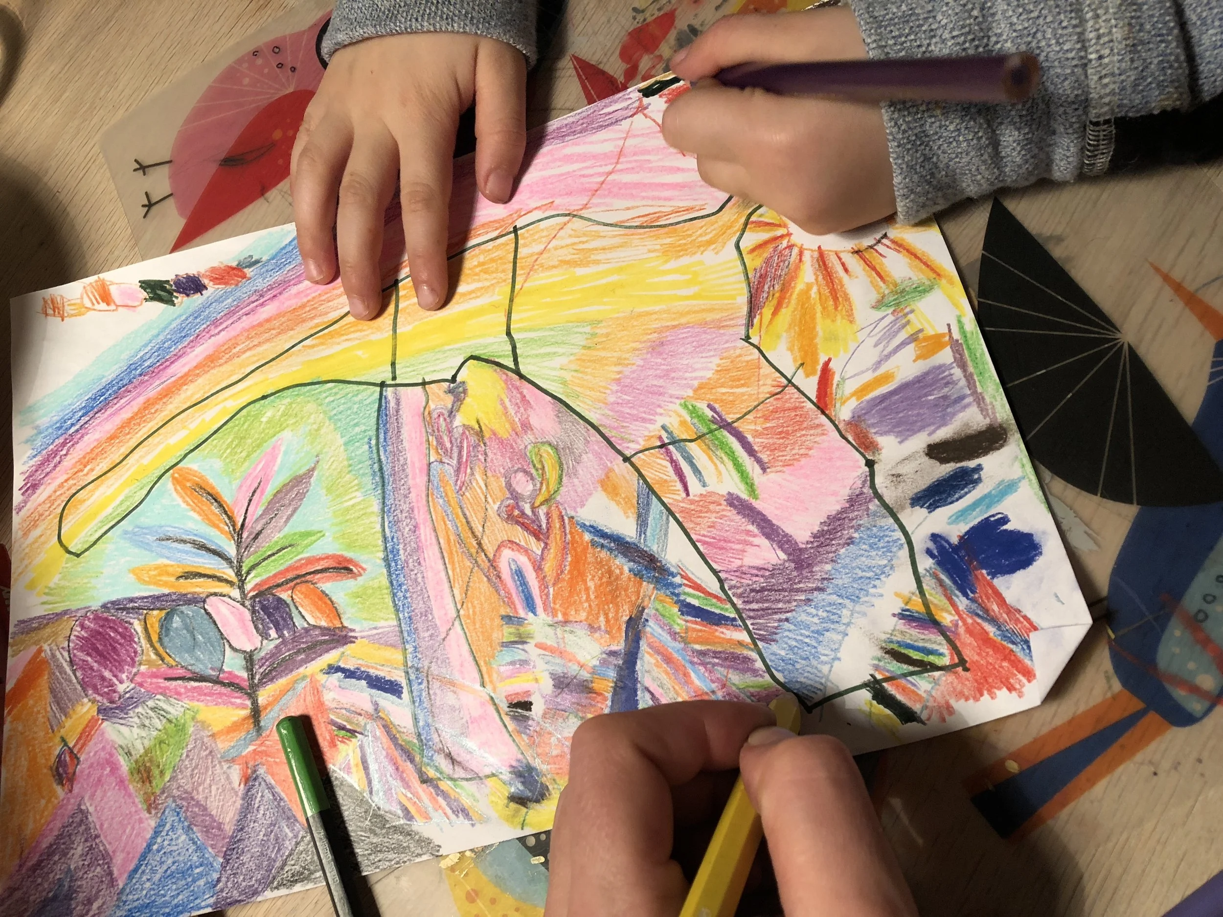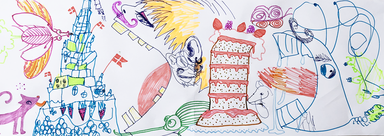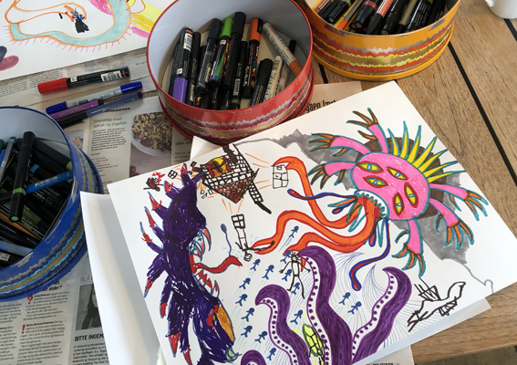 At tegne på den samme tegning med børn er ekstremet underholdende. Det giver adgang til deres indre fantasi univers. Sammen kan man undersøge og opbygge et væld af verdner og vilde fortællinger.