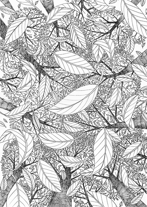 Dette surreelle pigeunivers blev til en serie af tegninger. Nogle blev senere til silketryk. Enkelte blev udvalgt af Gocard, trygt og omdelt i hele landet. 15 år senere skrev en hollandsk kvinde til mig, hun havde fundet en del af et af kort i en secondhand jakke hun havde købt, og ville gerne vide hvordan hele tegningen ser ud. Den er her. Det er fascinerende hvordan tegninger kan rejse gennem tid og rum. Fortsat fange opmærksomheden og eksistere gennem dem de møder på vejen.